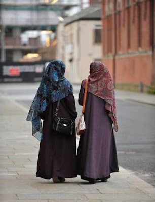 pakaiannya bagi menutup seluruh tubuhnya (semasa mereka keluar); cara yang